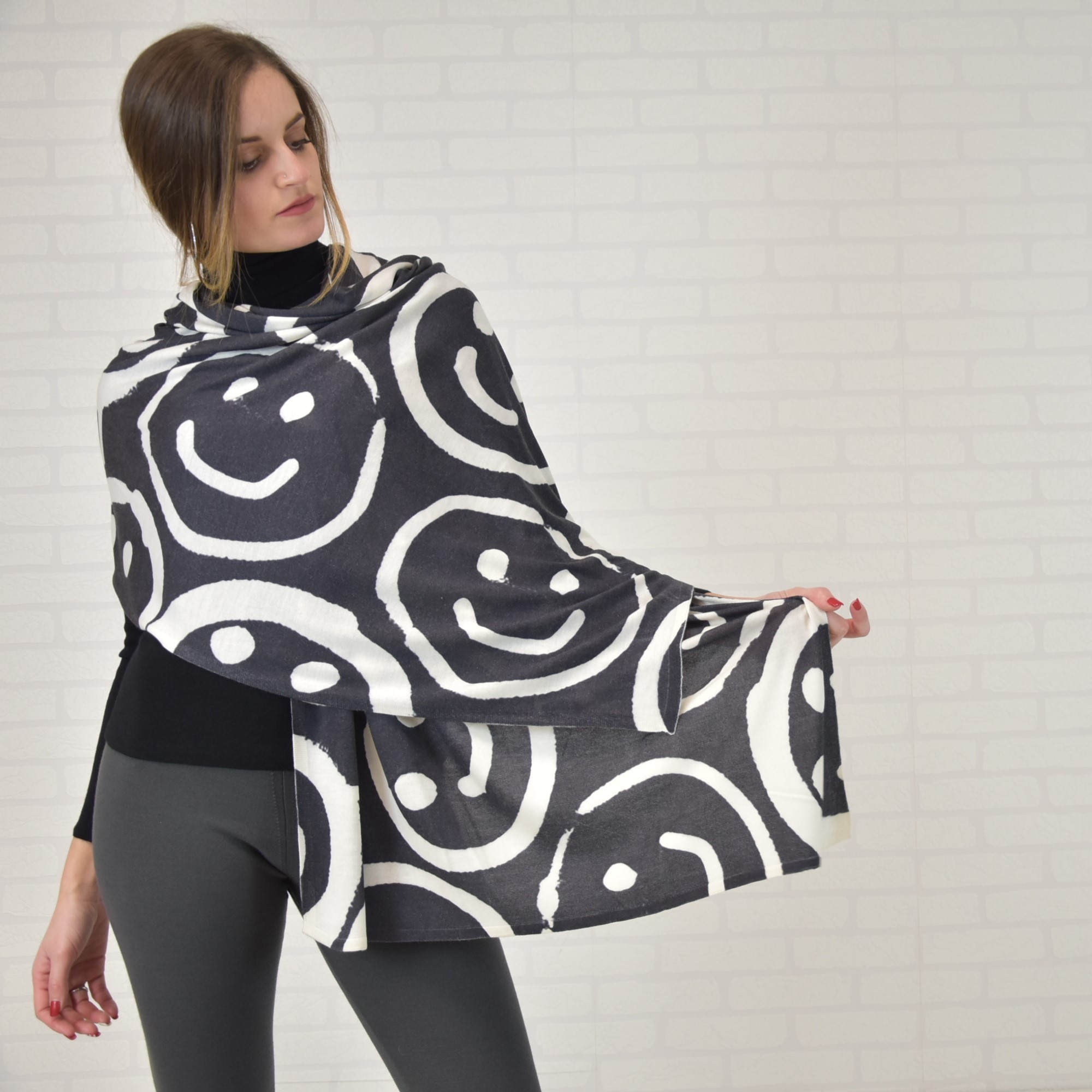 Scarf 70% cashmere 30% silk ultralight (knitwear 18 gauge) with front digital print