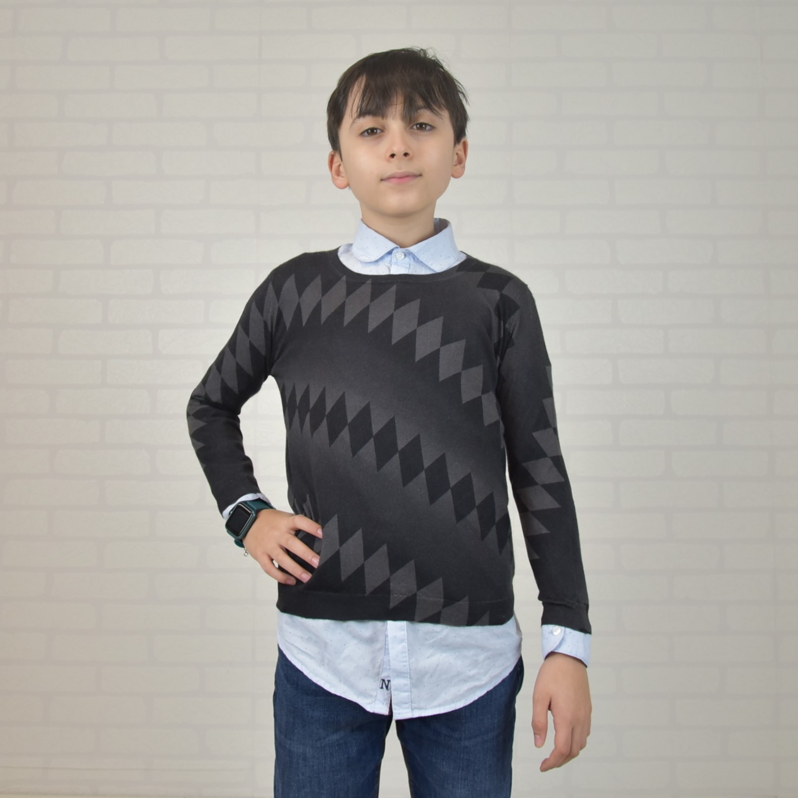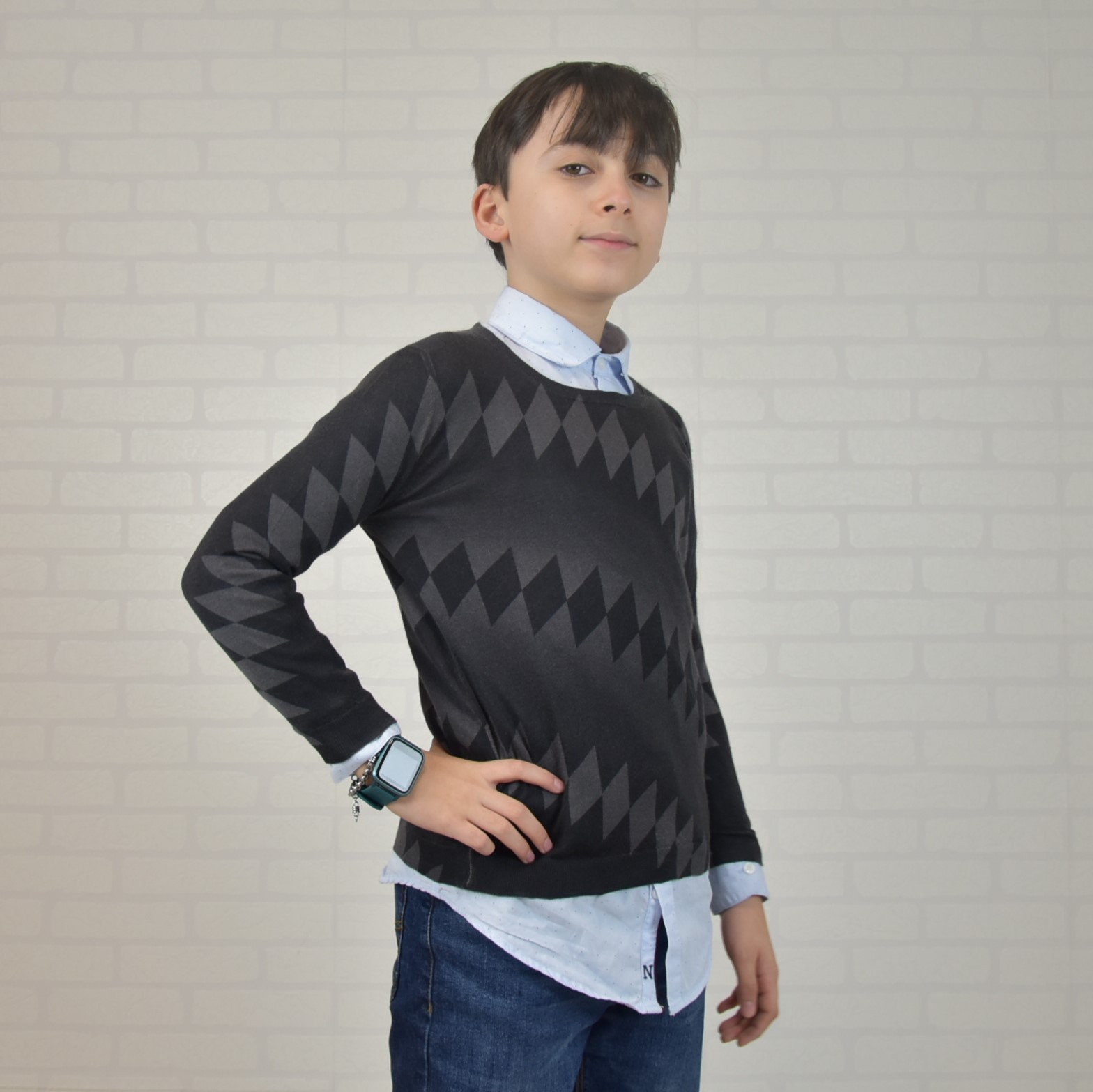 Round neck sweater made of 100% cashmere (knitwear 18 gauge) with all-over digital print (inkjet digital printing)