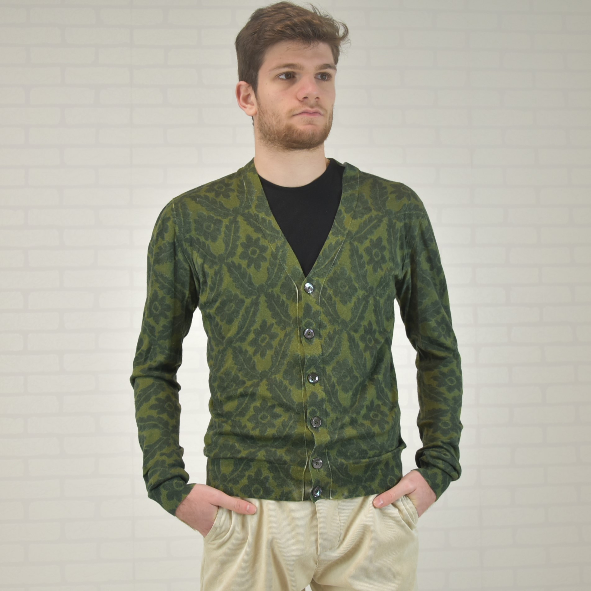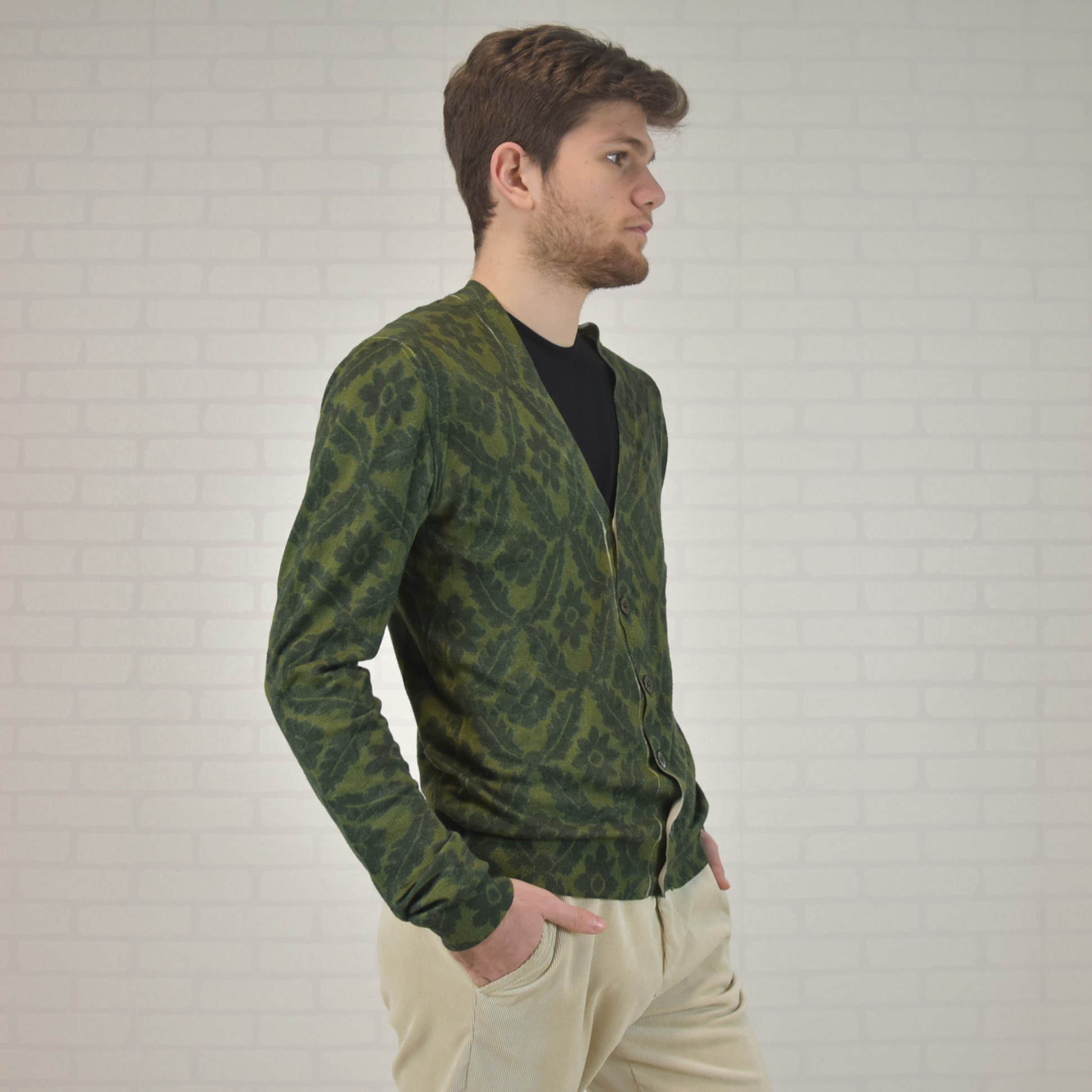 70% cashmere 30% silk ultralight cardigan (knitwear 18 gauge) with all-over digital print (inkjet digital printing)