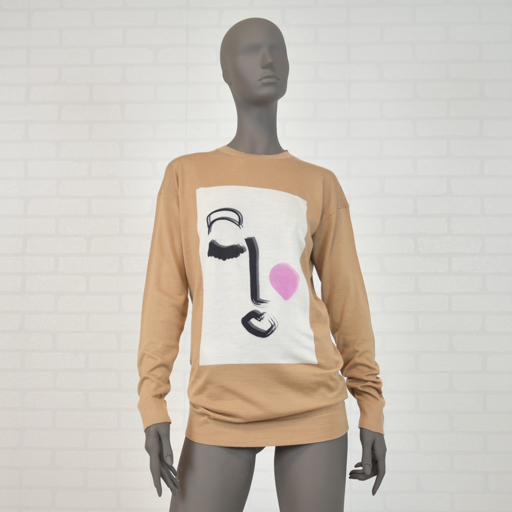 Round neck sweater made of 70% cashmere 30% silk (knitwear 18 gauge) with front digital print (inkjet digital printing)