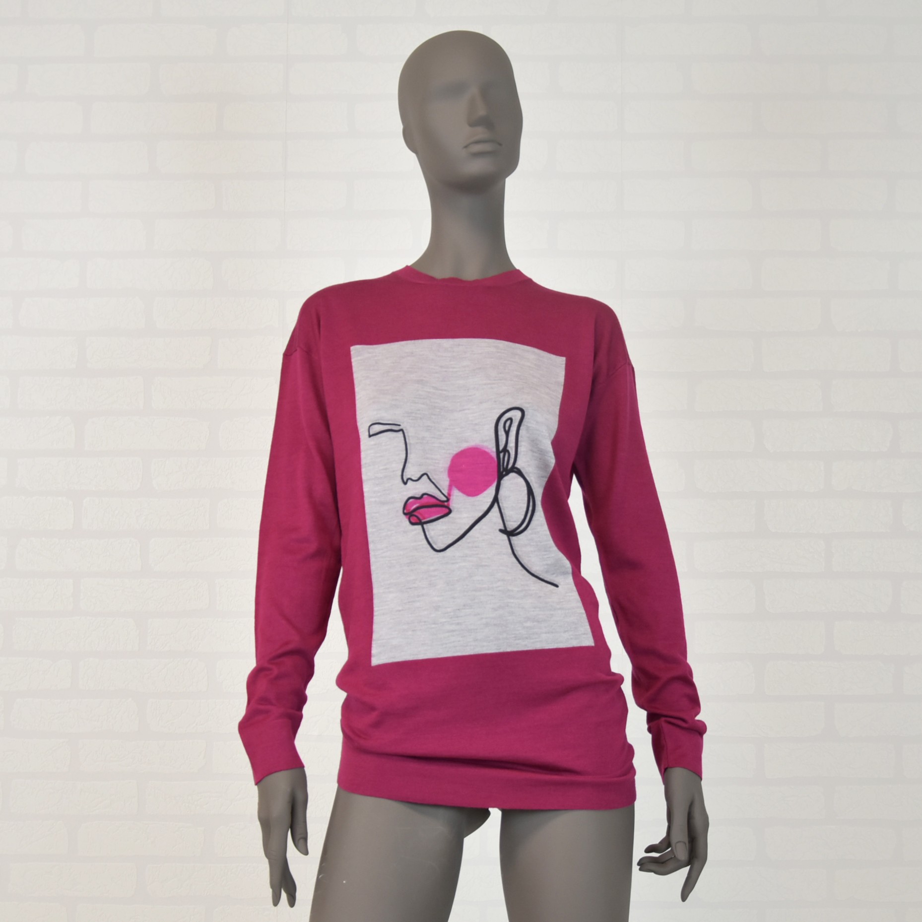Round neck sweater made of 70% cashmere 30% silk (knitwear 18 gauge) with front digital print (inkjet digital printing)