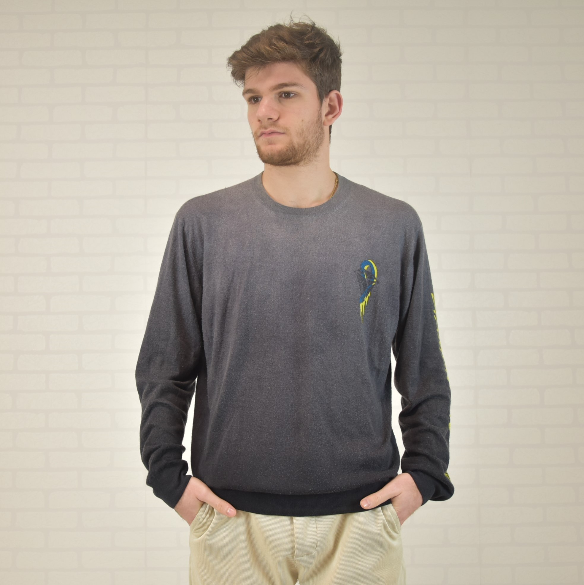 70% cashmere 30% silk ultralight crewneck (knitwear 18 gauge) with all-over digital print (inkjet digital printing)
