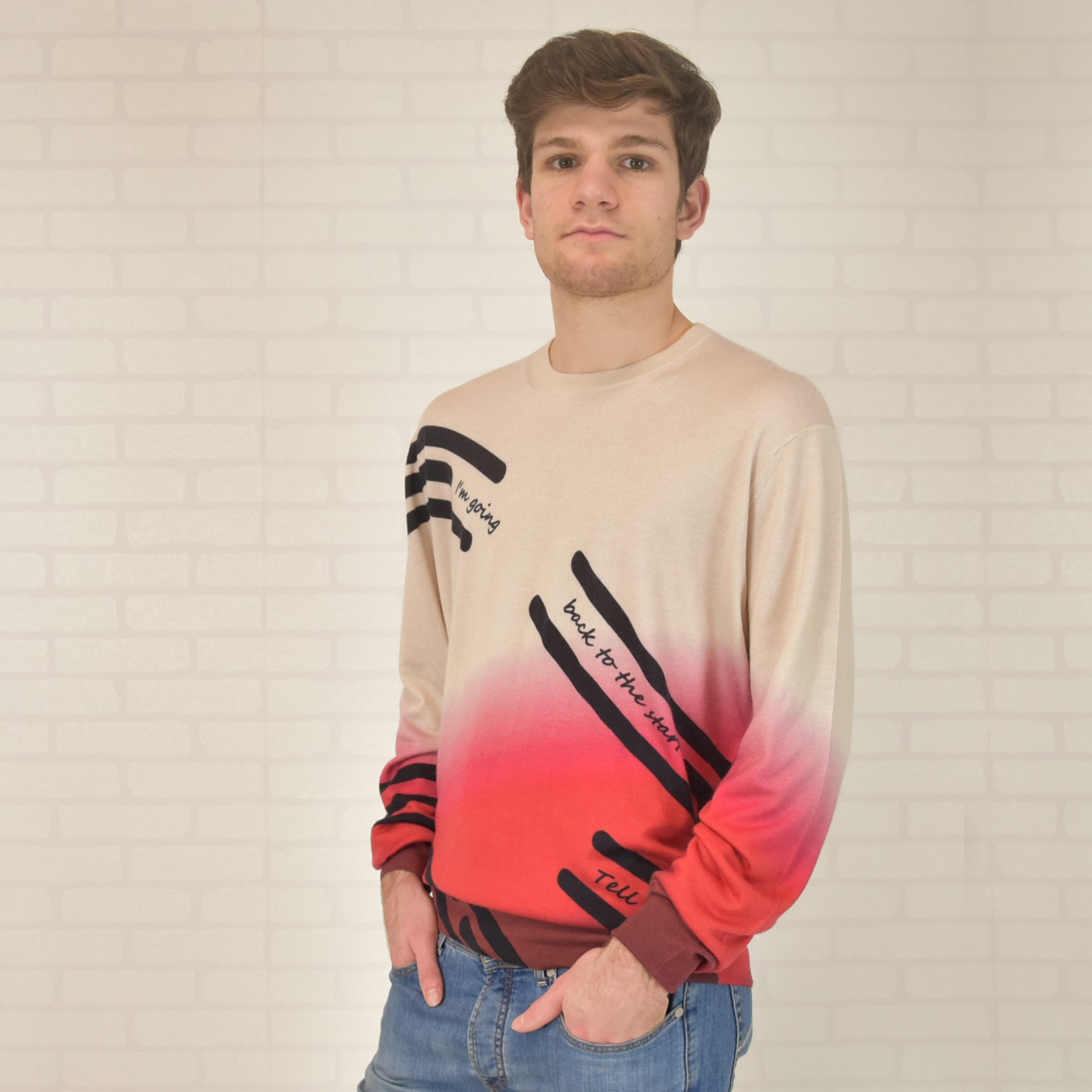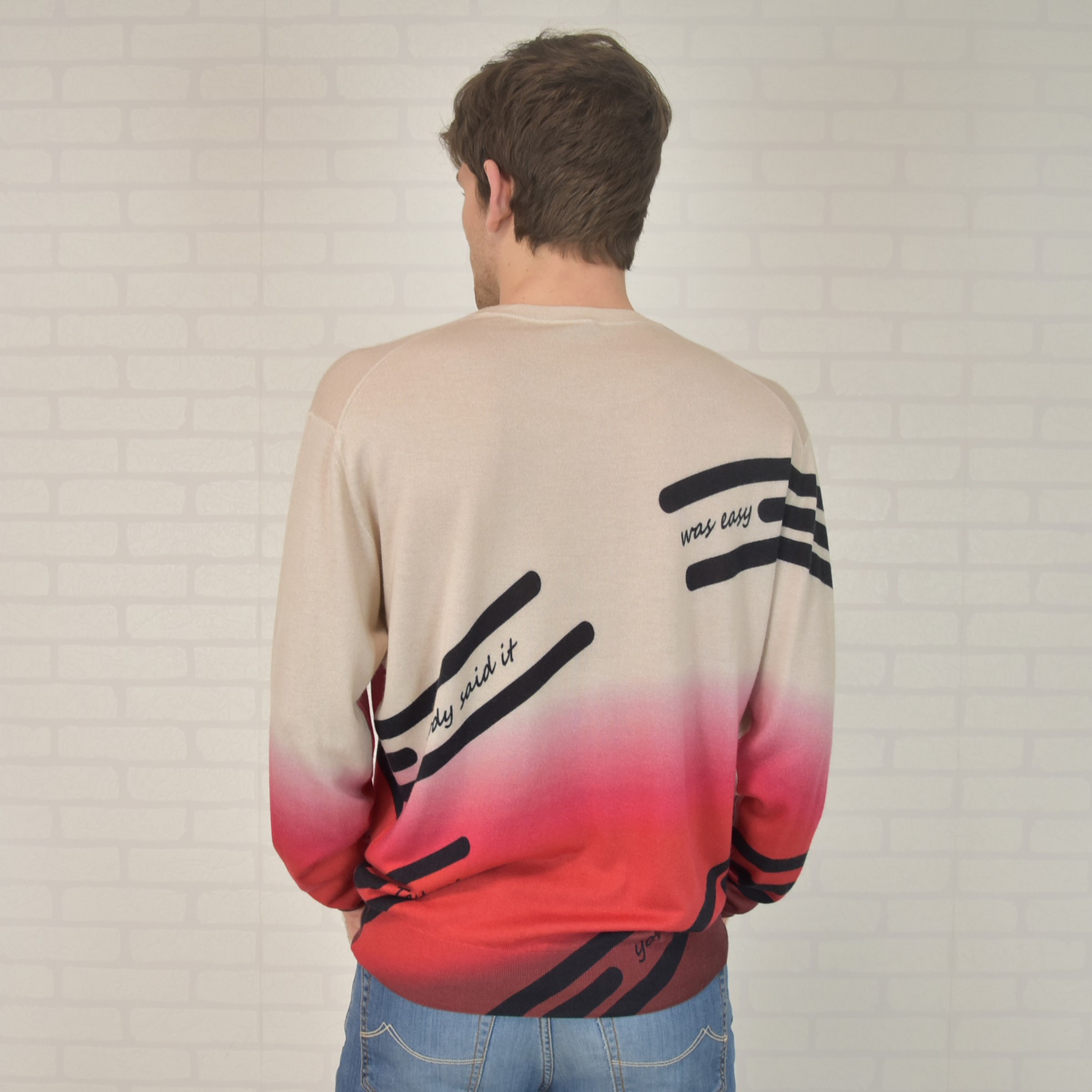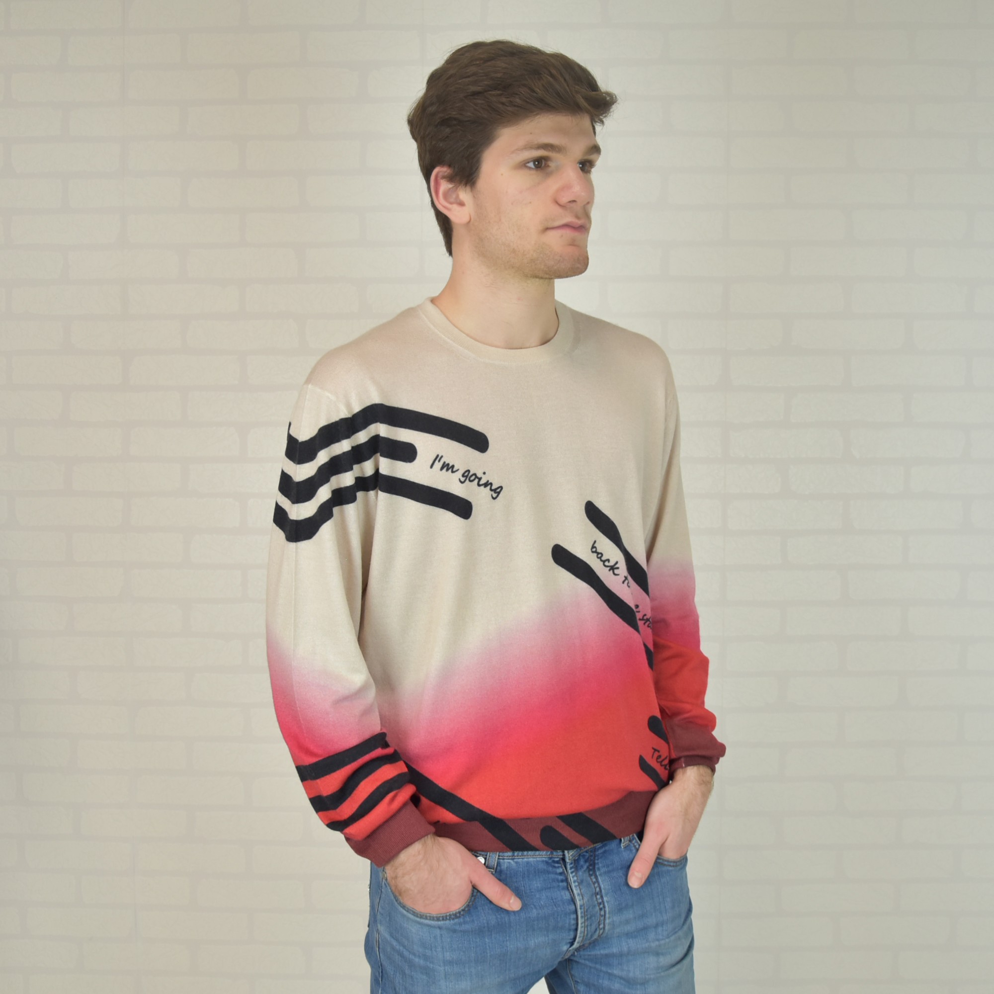 Ultralight round neck sweater made of 70% cashmere 30% silk (knitwear 18 gauge) with all-over digital print (inkjet digital printing)