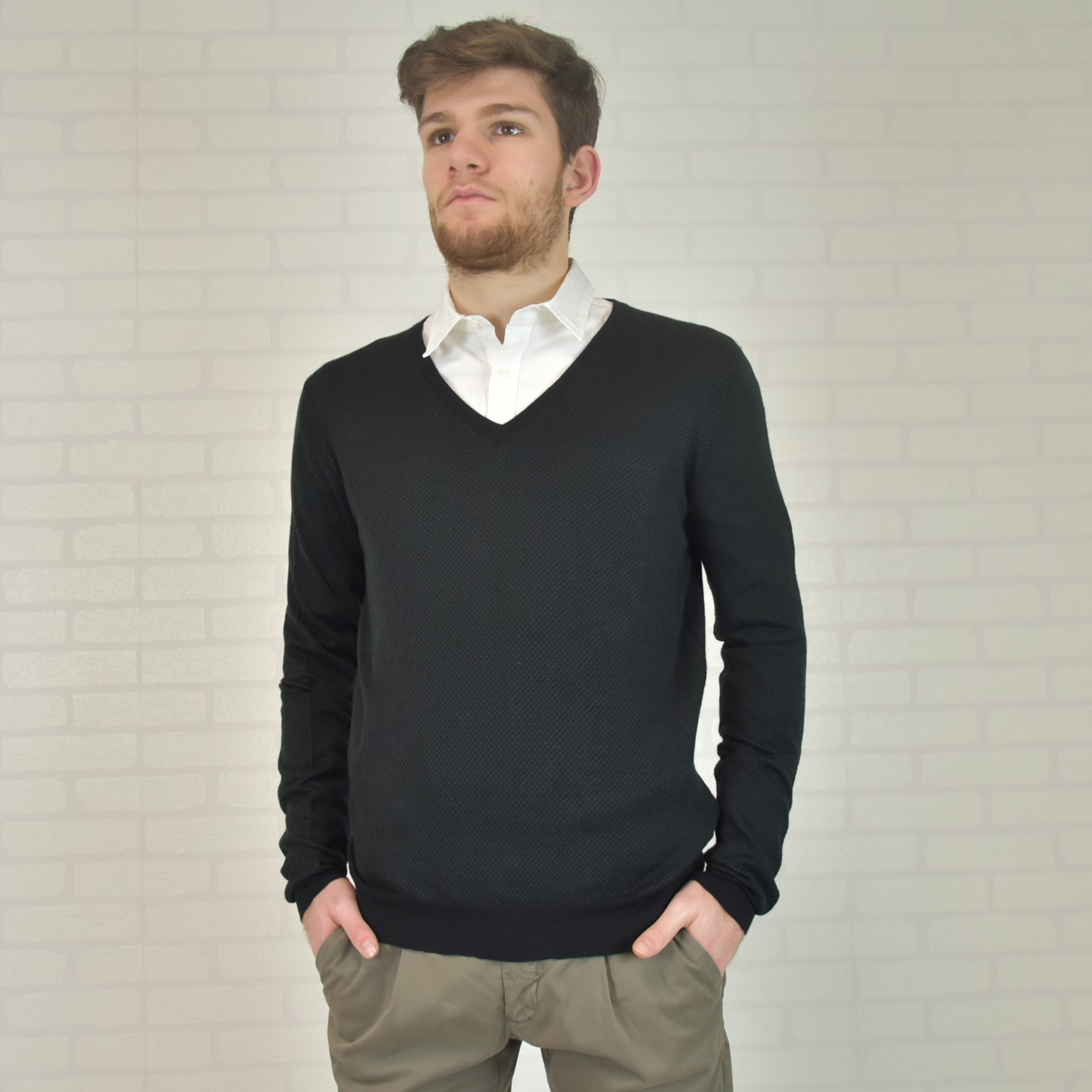 Home / Shop / Knitwear for men / Cashmere V-Neck Jacquard Sweater Cashmere V-Neck Jacquard Sweater€250,00 Taglia Choose an option485254 Orange and Brown Choose an optionBlack and greenClear Cashmere V-Neck Jacquard Sweater quantity Add to cart SKU: 3JQ06V Categories: Knitwear for men, Shop, Solid color knitwear Tags: bicolor, cashmere, jacquard, maglia, v Description Additional information Description Two-tone jacquard V-neck sweater 100% cashmere ultralight (knitwear 18 gauge) Additional information Taglia 48, 52, 54 Composizioni 100% cashmere Orange and Brown Black and green Proprietà Maglia jacquard 2 colori nero – verde Related products Cashmere-Silk OPTICAL Sweater €230,00 Select options Silk COMFORT Sweater €200,00 Select options Silk LETTERING Scarf €140,00 Select options Unisex Cashmere Scarf €160,00 Select options
