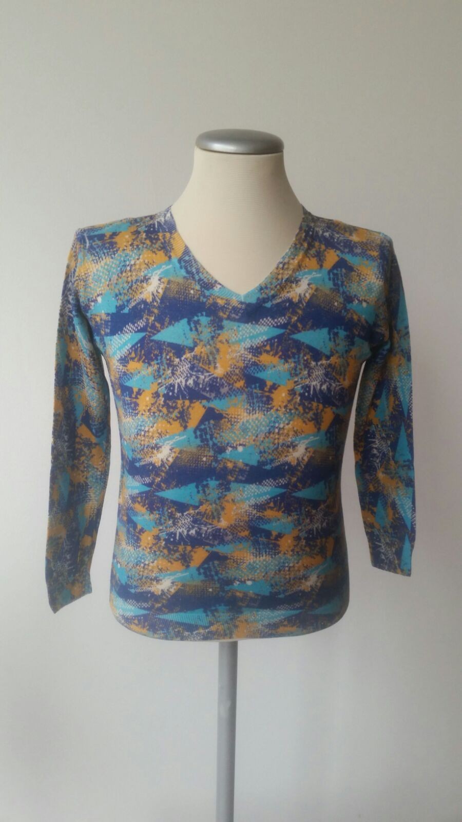 Children’s sweater made in Italy, wool/silk ultralight yarn, long sleeve, V-neck, digitally printed with high-definition. The color fully penetrates the fabric, making it incredibly soft to the touch.