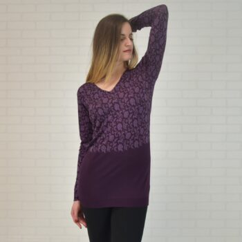 Sweater 70% cashmere 30% silk ultralight (knitwear 21 gauge) with V-neck and all-over digital print (inkjet digital printing)
