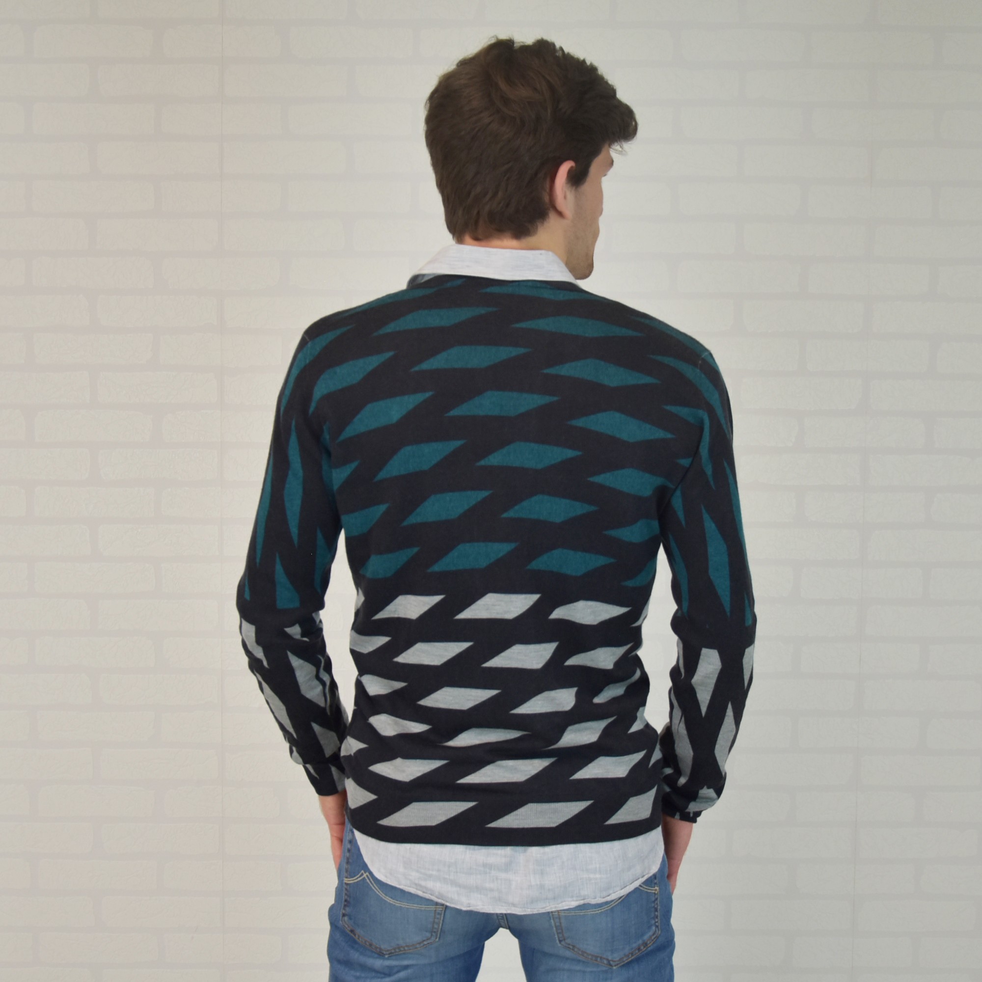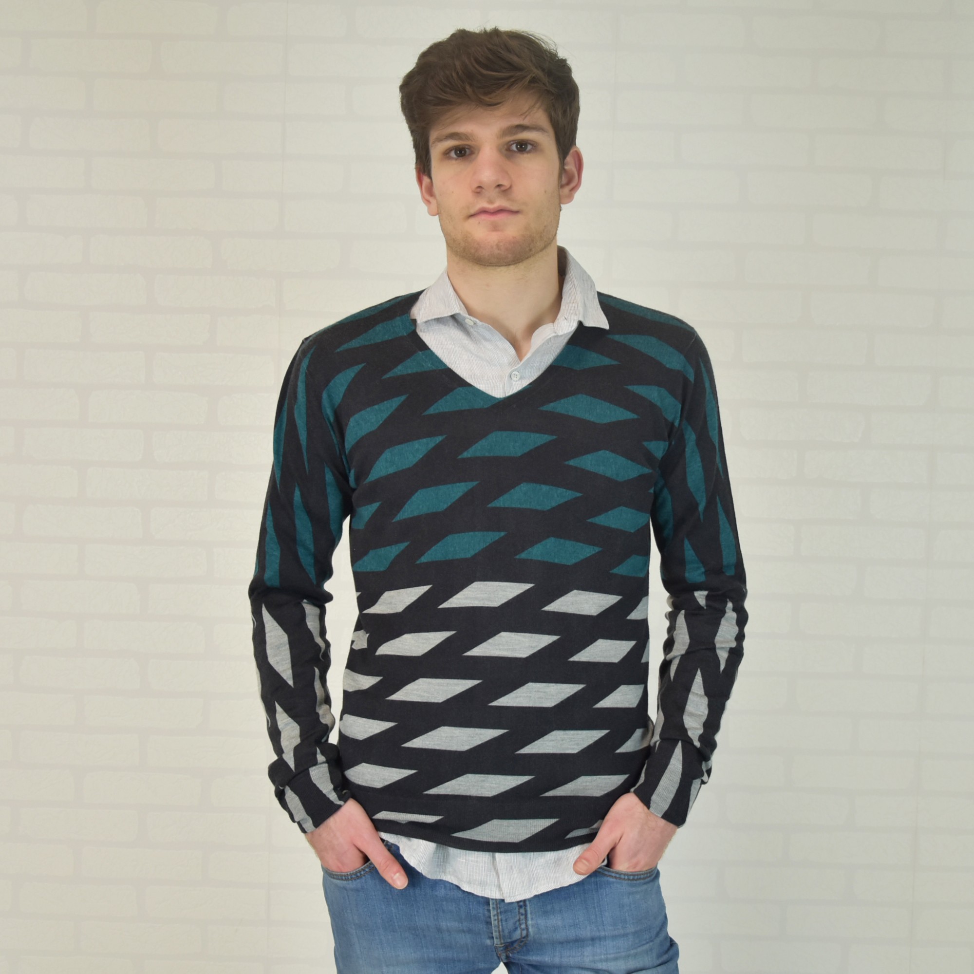 70% cashmere 30% ultralight silk sweater (knitwear 18 gauge) with V-neck and all-over digital print (inkjet digital printing).