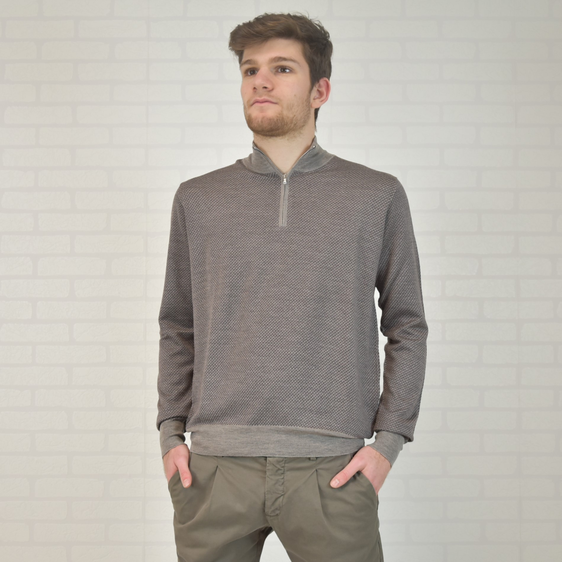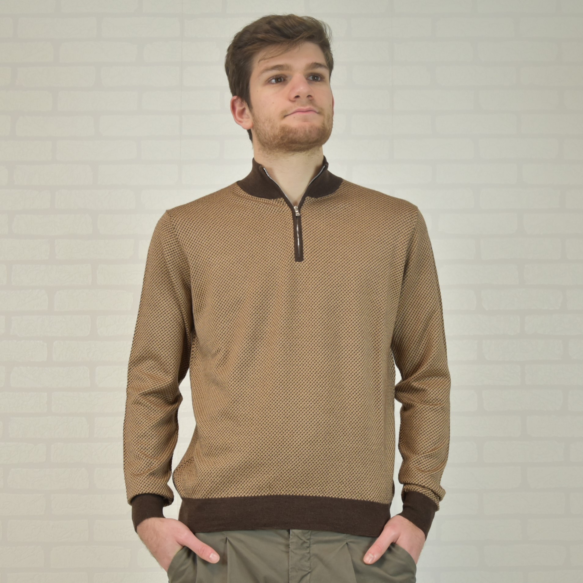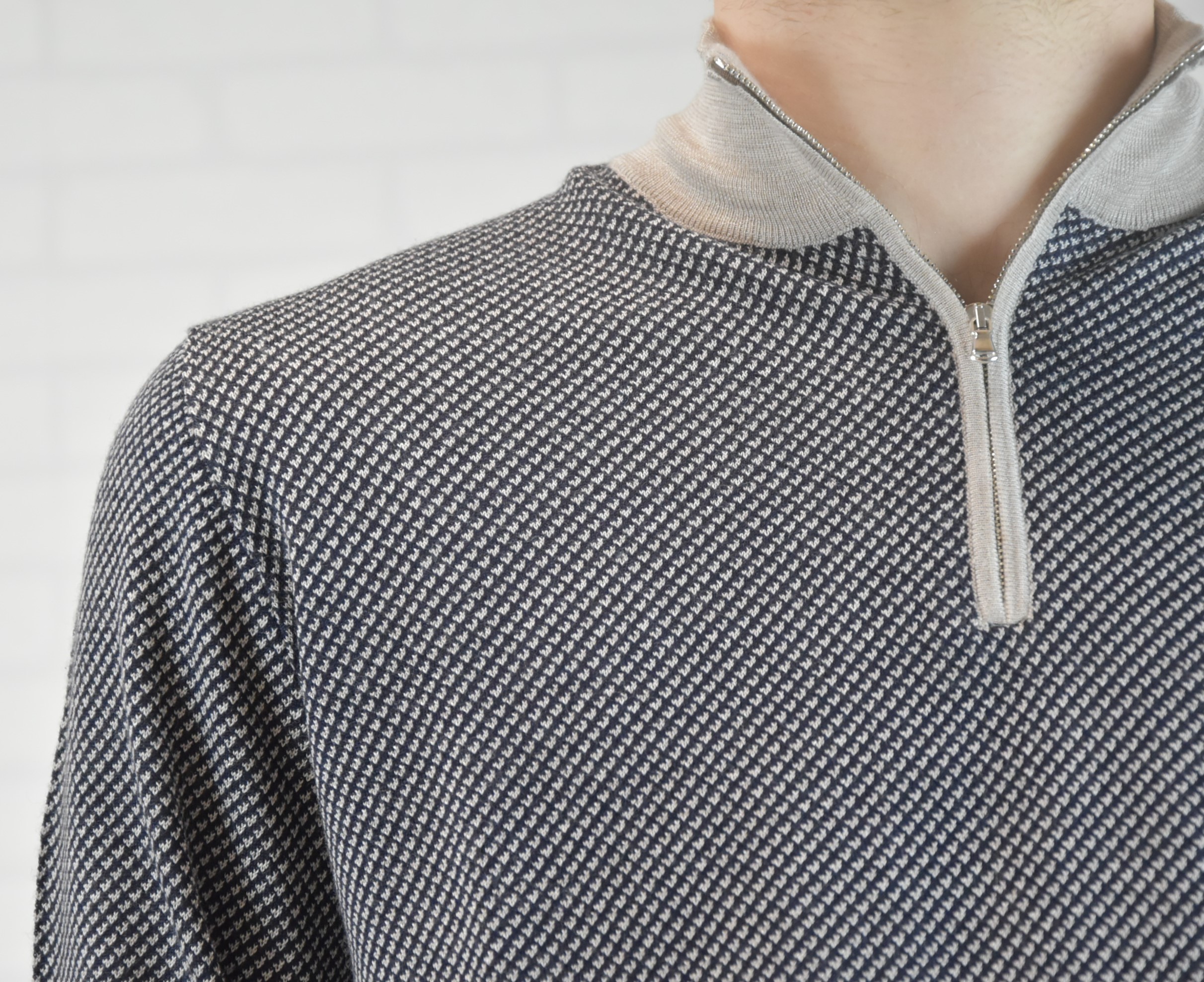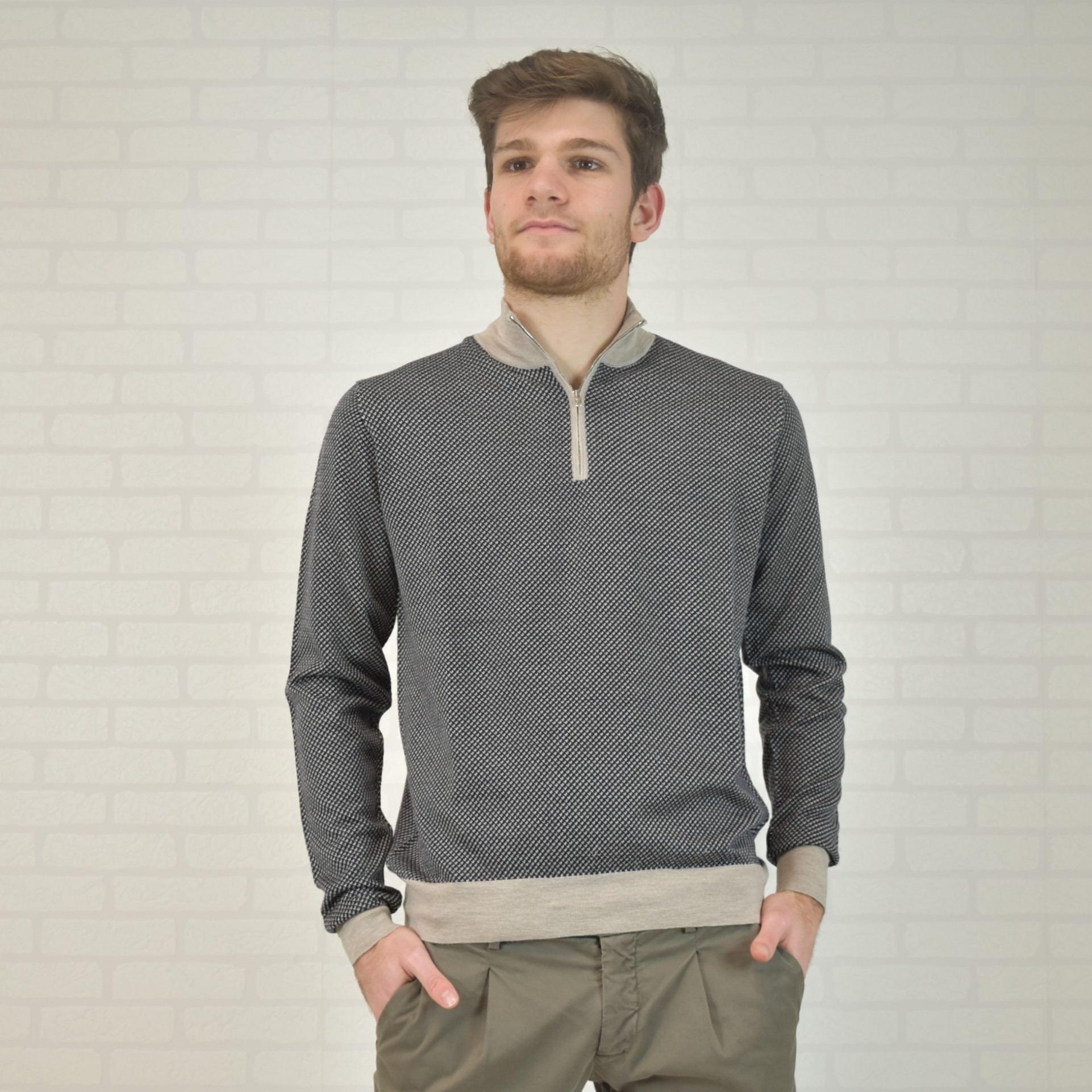 Bicolor jacquard turtleneck 70% cashmere 30% silk ultralight (knitwear 18 gauge) with zip