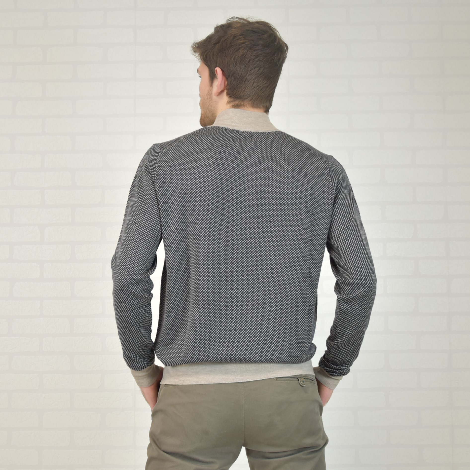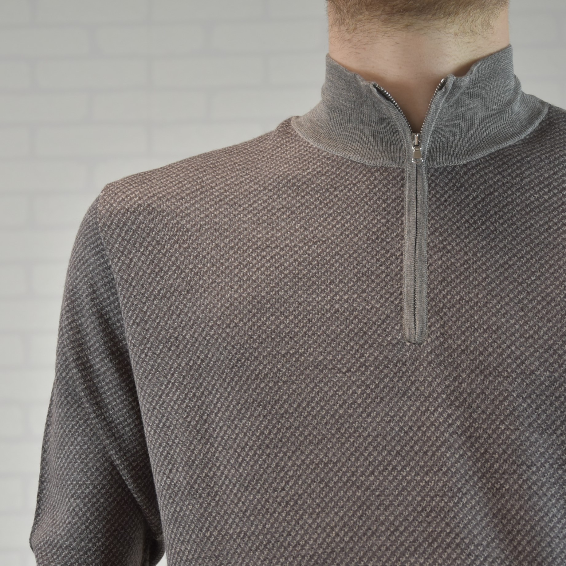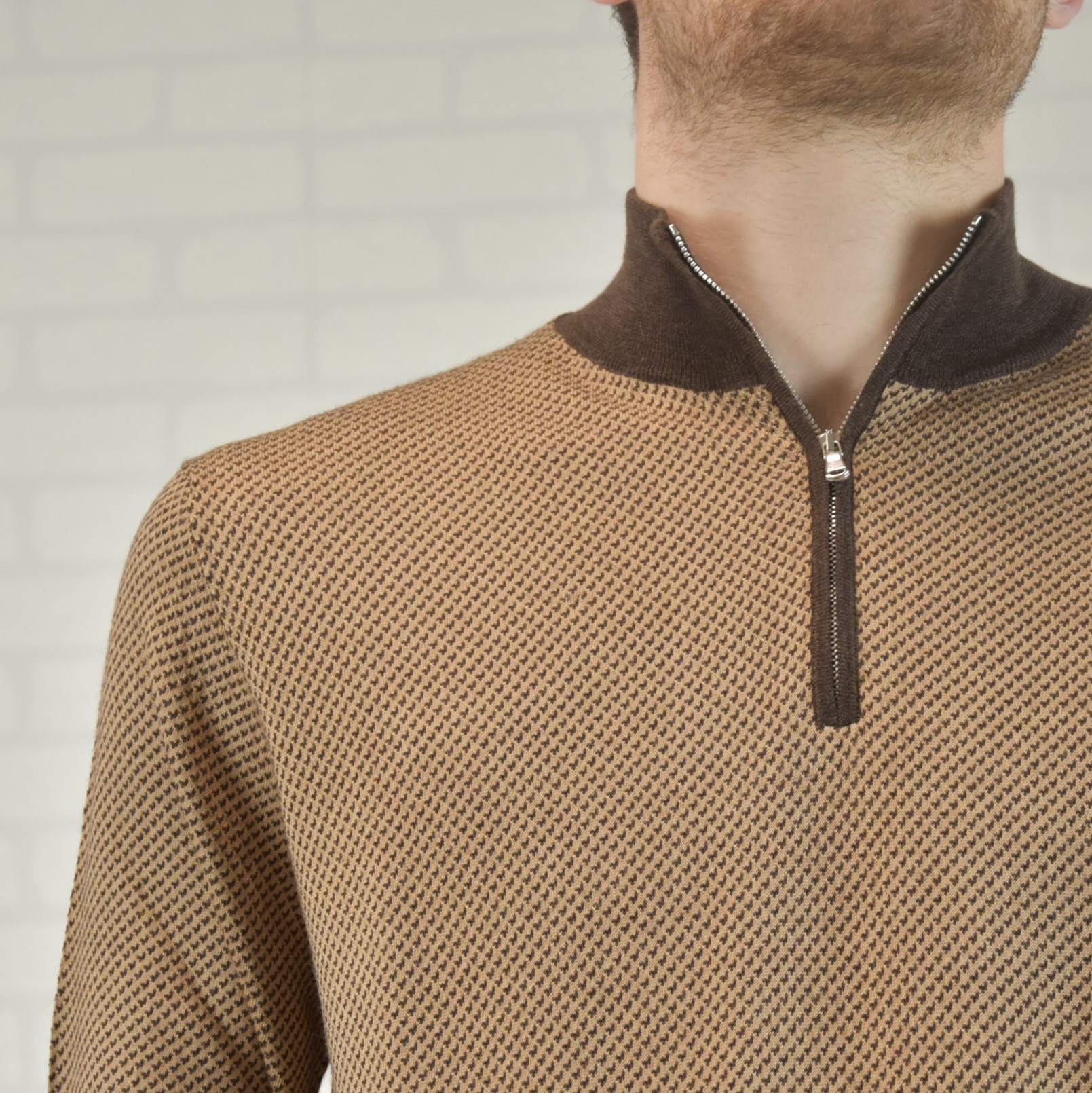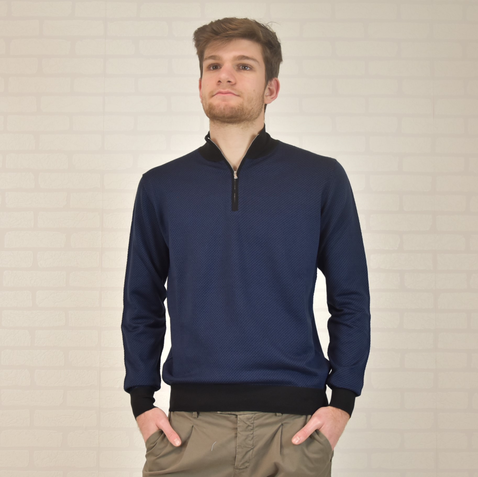 Bicolor jacquard turtleneck 70% cashmere 30% silk ultralight (knitwear 18 gauge) with zip