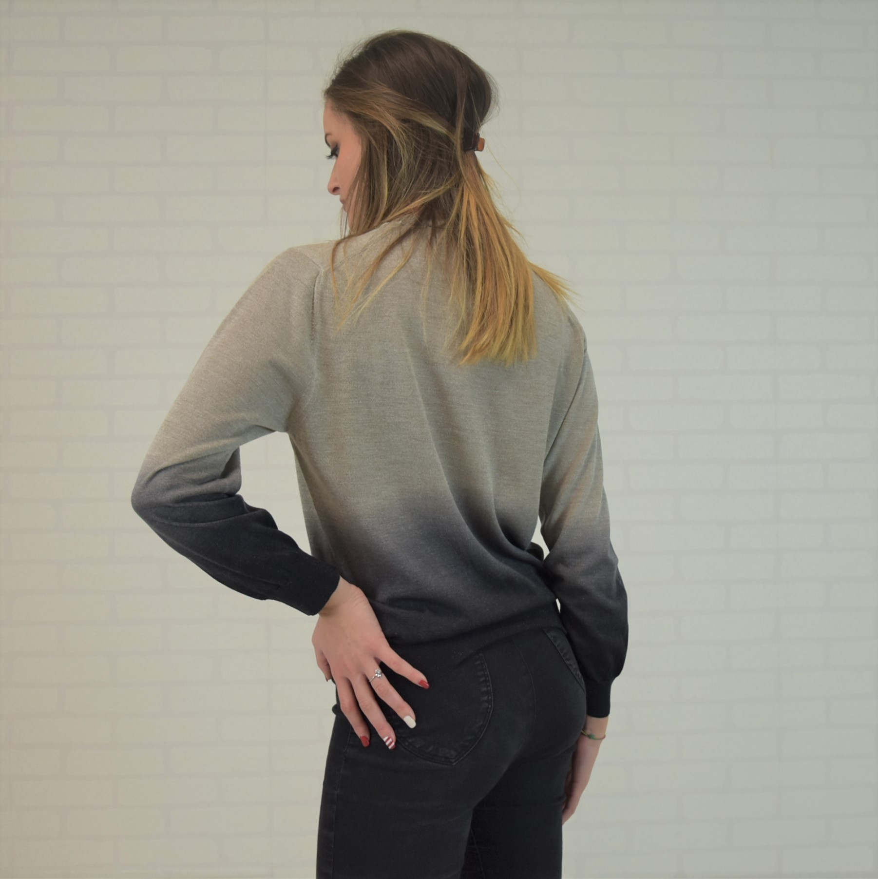 Crewneck sweater 100% wool ultralight (knitwear 18 gauge) with all-over gradient made with digital printing (inkjet digital printing)