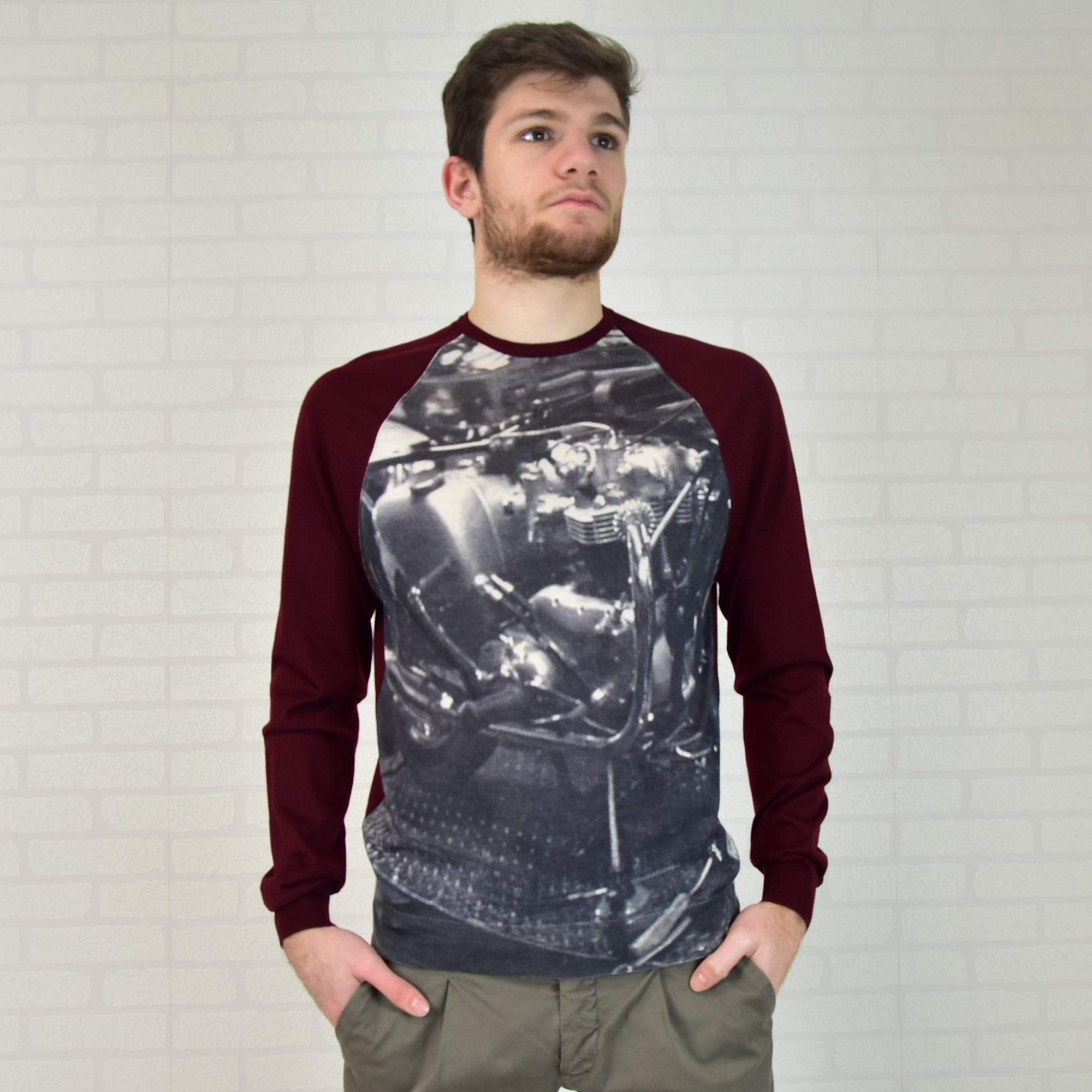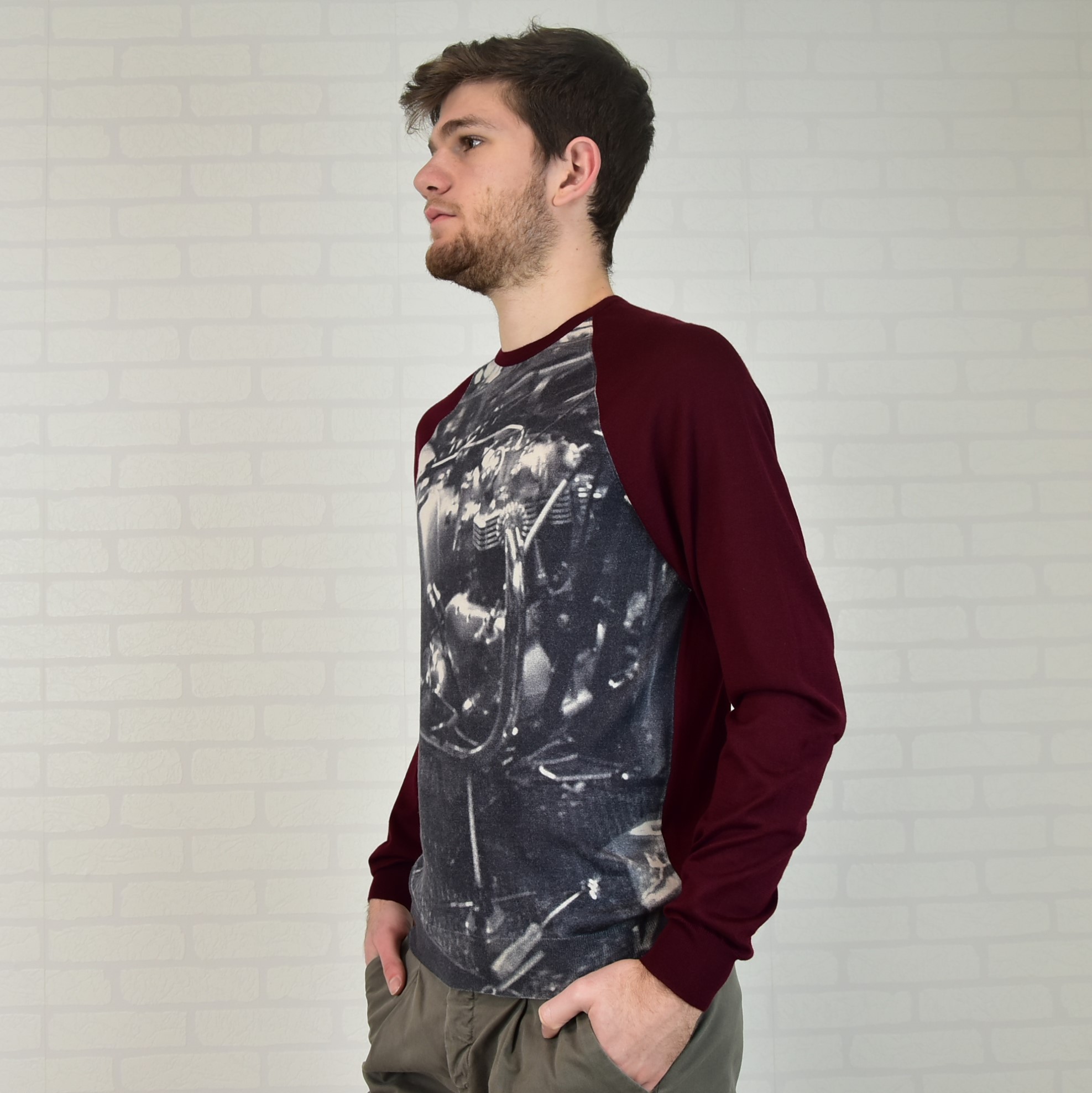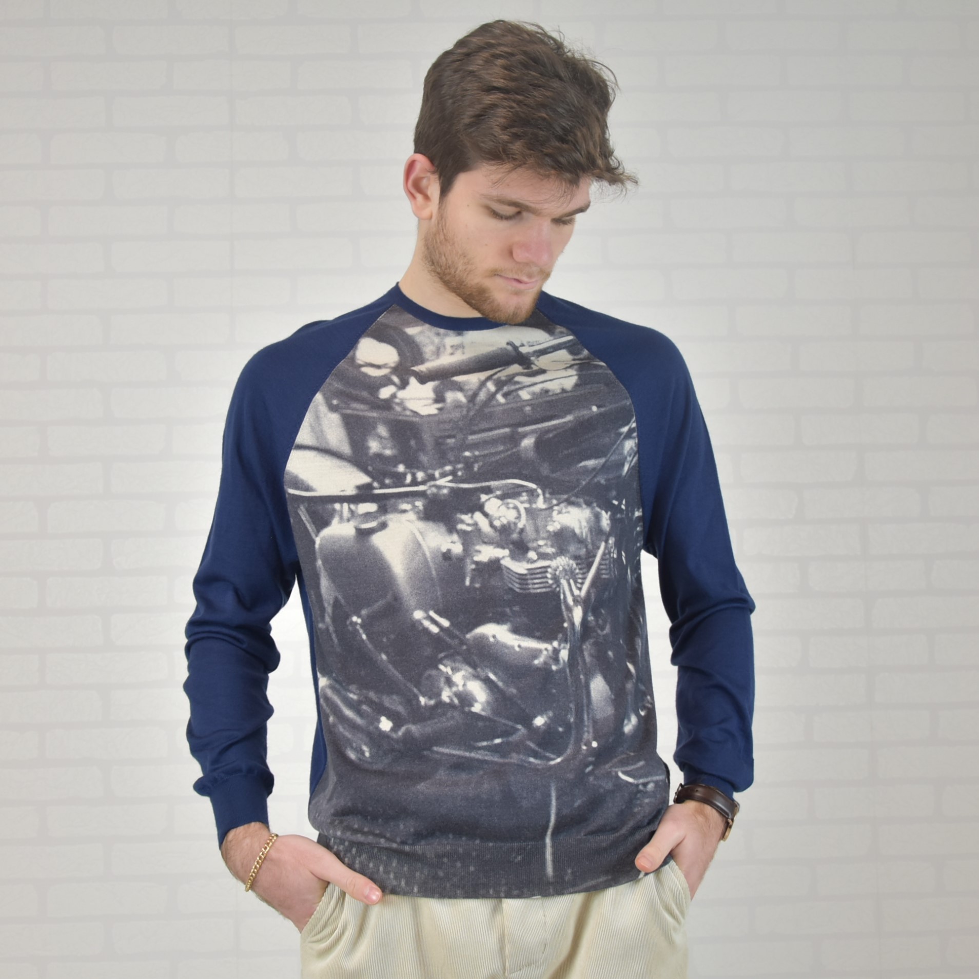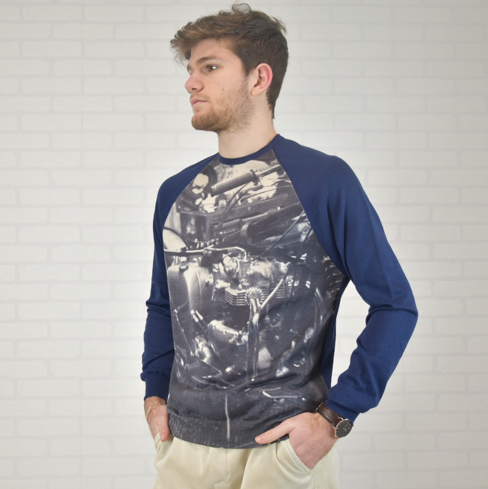 Raglan crew neck with 70% cashmere 30% silk ultralight (knitwear 18 gauge) and front digital print (inkjet digital printing).