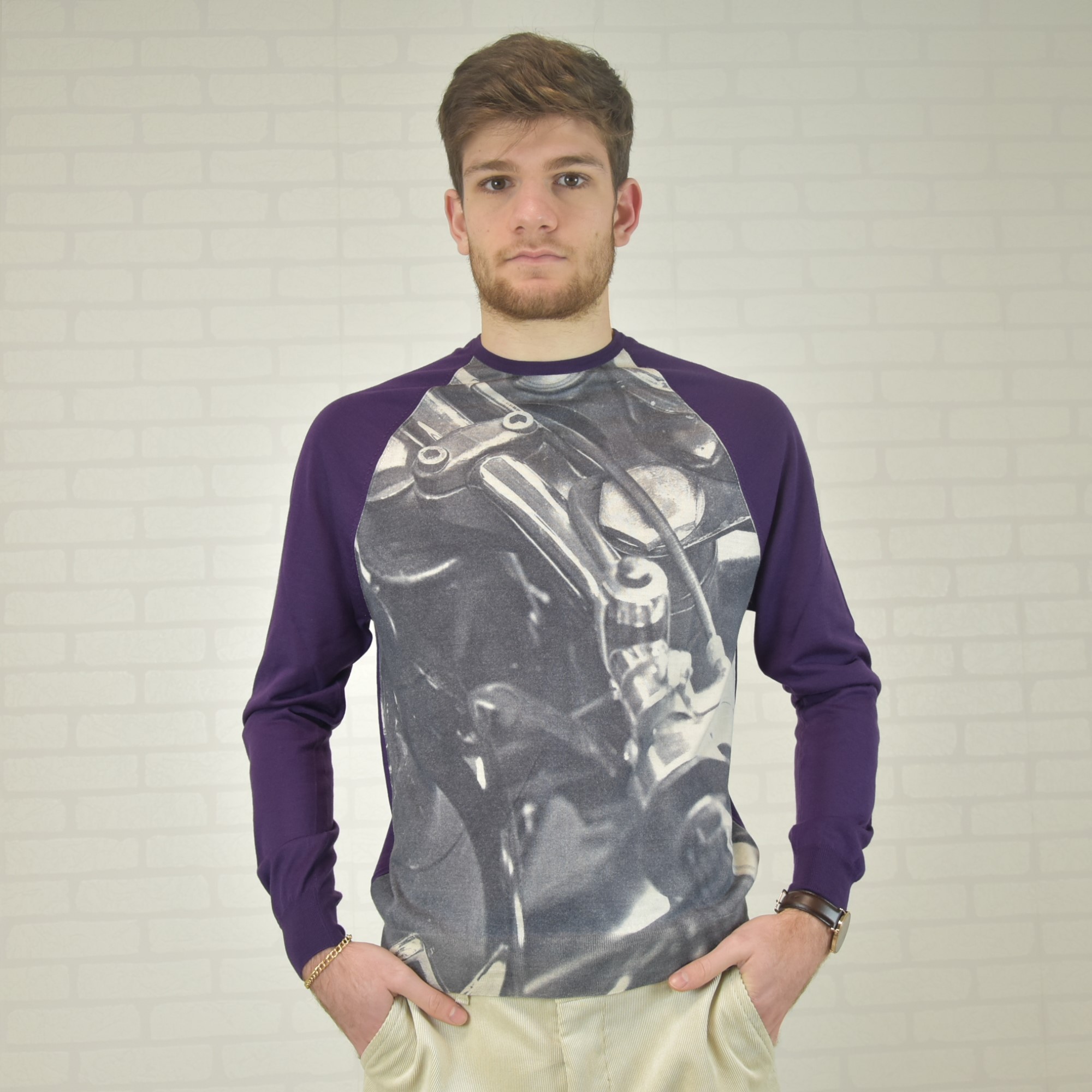 Raglan crew neck with 70% cashmere 30% silk ultralight (knitwear 18 gauge) and front digital print (inkjet digital printing).