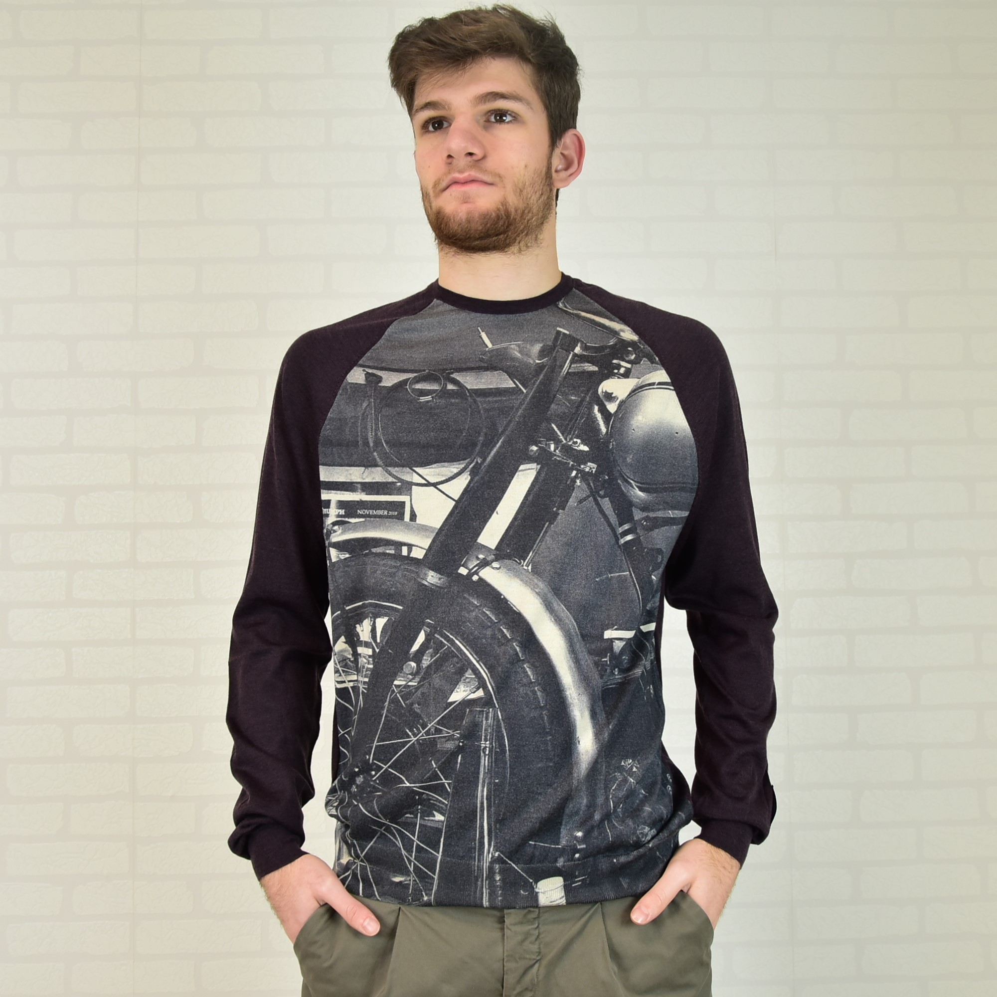 Raglan sleeve round neck sweater made of 70% cashmere 30% silk (knitwear 18 gauge) with front digital print (inkjet digital printing)