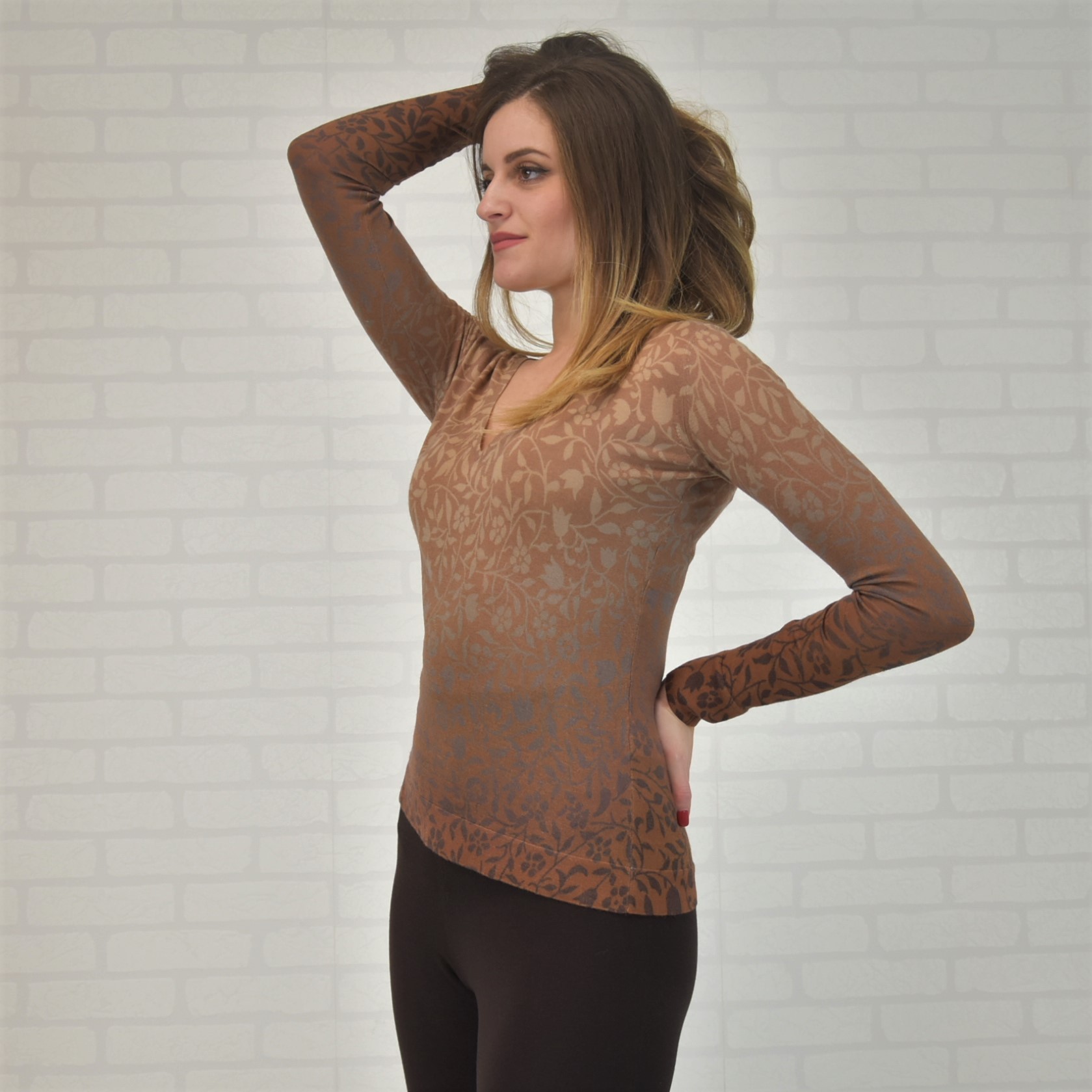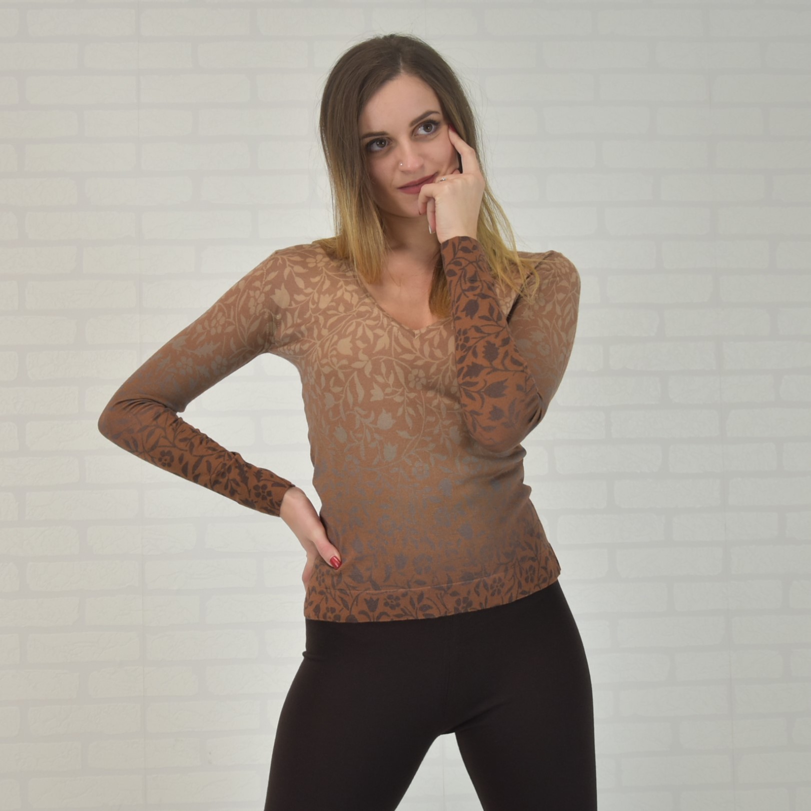 Sweater 100% wool (knitwear 18 gauge) with V-neck and digitally printed three-quarter sleeves (inkjet digital printing)