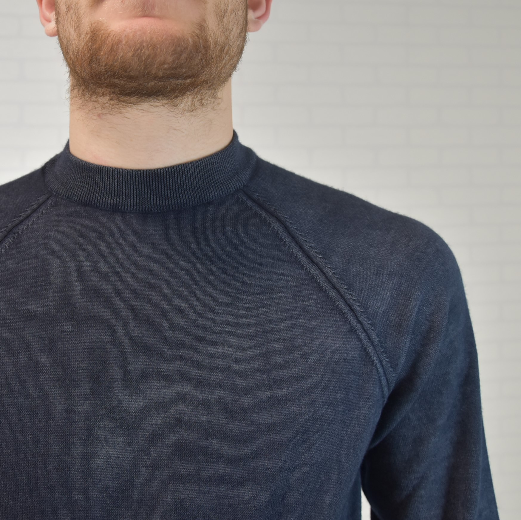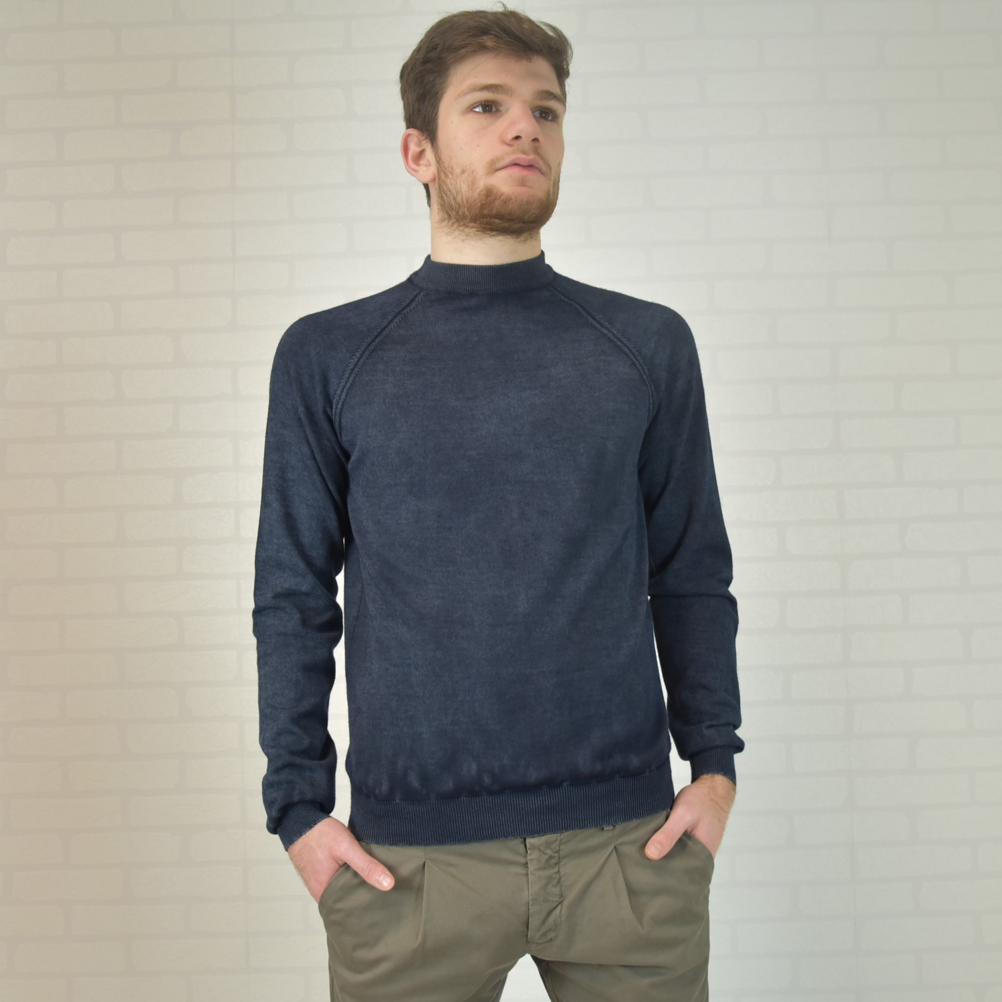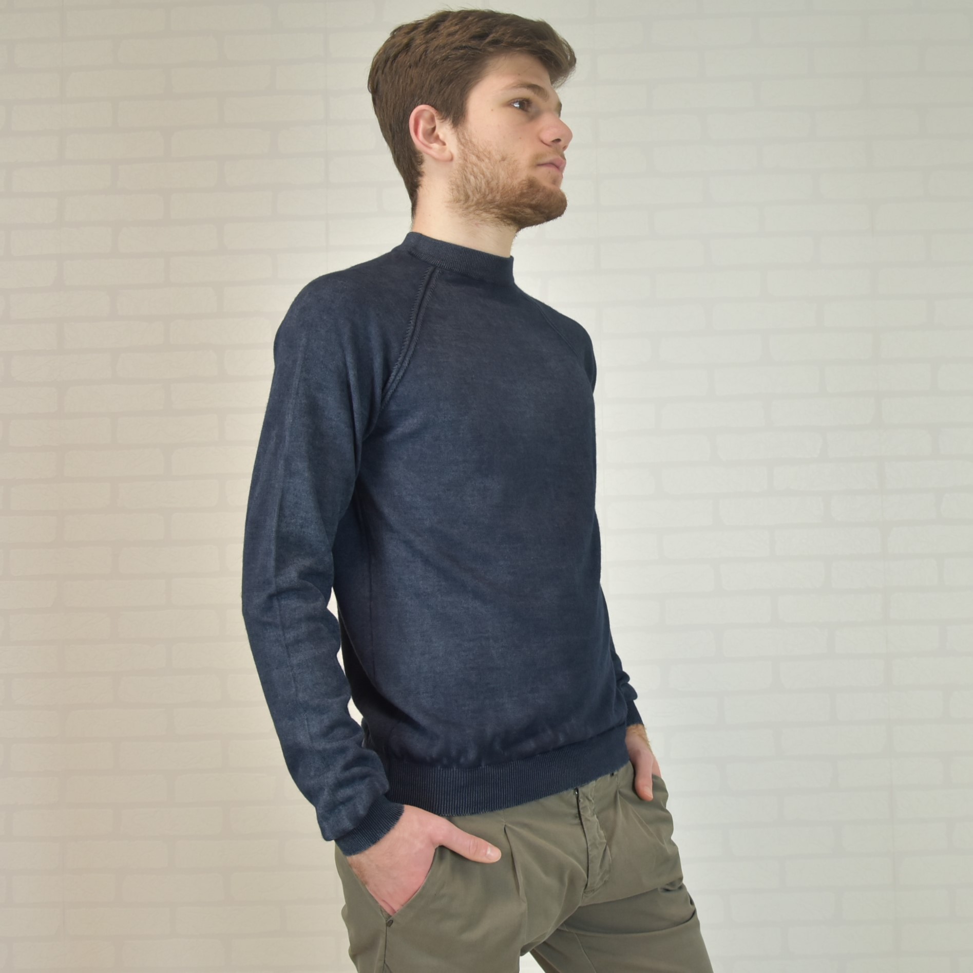 70% cashmere 30% silk ultralight crewneck sweater (knitwear 14 gauge) with stone washed effect