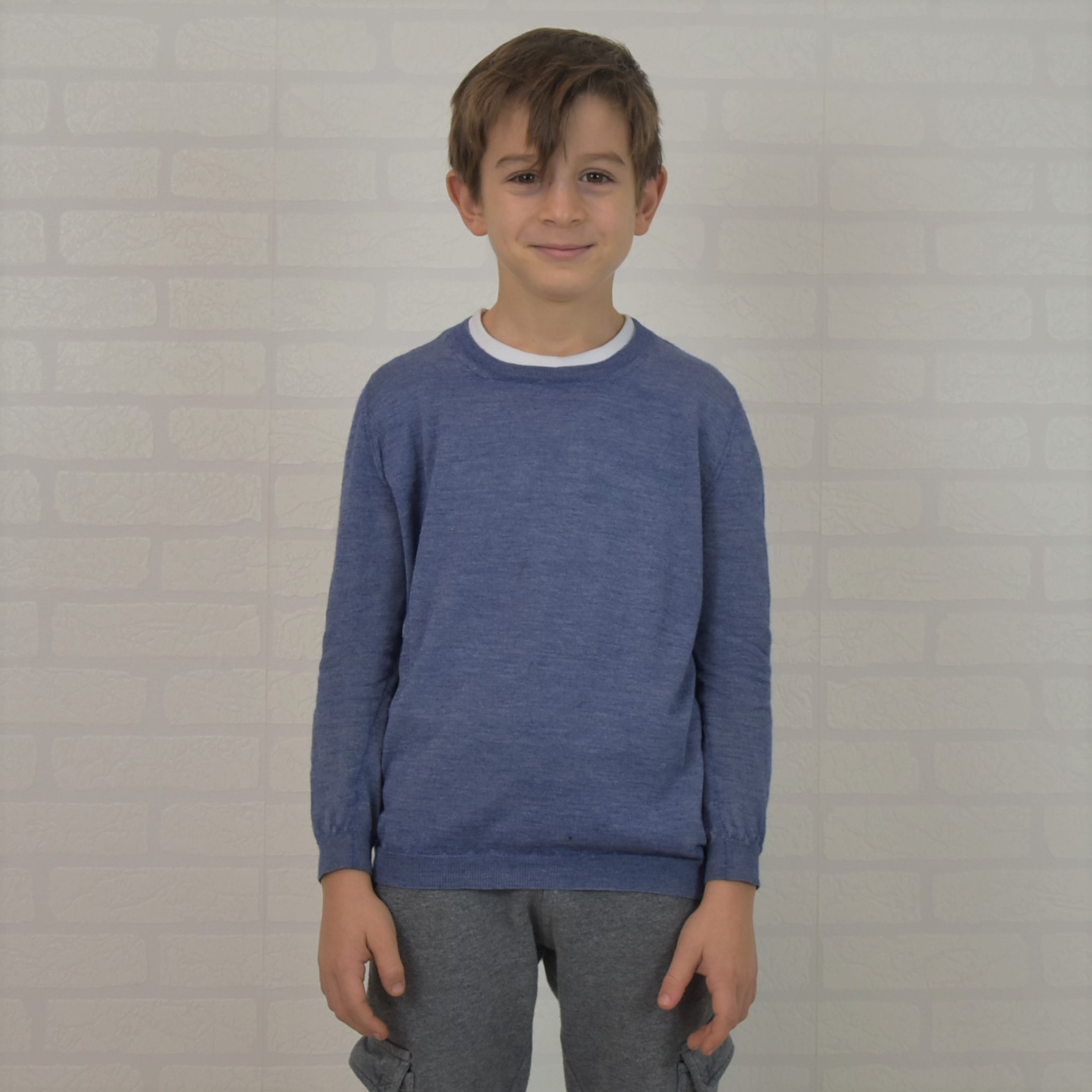 Round neck sweater 70% cashmere 30% silk ultralight (knitwear 18 gauge) with white salt dye and stone washed effect